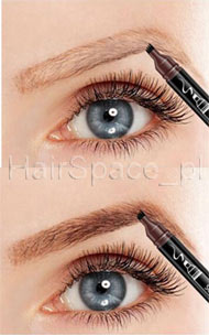 - marker, thanks to which it is easy to thicken, emphasize the shape and give the right color to the eyebrows, and the formula based on microbledning technology (painting hairs on the skin) allows you to get a natural effect, similar to hair